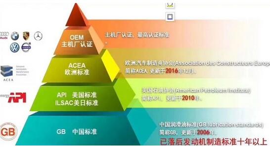 因為他們與****機油 標(biāo)準(zhǔn)相距甚遠(yuǎn),通過下方的金字塔,你就明白這個含義,會發(fā)現(xiàn)汽車廠 (OEM主機廠 ),才是的金字塔上層。但這些 的顯示,一般就是機油桶背面的一排不起眼的小字。